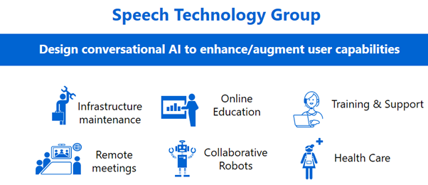 The Speech Technology Group (STG) is at the heart of modern artificial intelligence by designing novel algorithms for automatic speech recognition and data-driven dialogue systems enabling the creation of advanced and natural, speech enabled, human-machine interfaces. STG has been established in 2002 and since then worked on a wide range of speech technologies that include text-to-speech synthesis, speech intelligibility, automatic speech recognition (ASR) and dialogue modelling. Our focus is to develop advanced natural spoken human-machine interfaces and develop products and services that facilitate easy access to information, thereby improving productivity and quality of human life. STG has made significant contributions to the next generation of Toshiba’s speech recognition, HMM-based speech synthesis and statistical dialogue modelling. We work in collaboration with the speech R&D groups at the Knowledge Media Lab, Toshiba RDC, Kawasaki, Japan and Toshiba China R&D Centre, Beijing, China, and business divisions of Toshiba Group, Japan. Working with groups within Toshiba, we have a tight coupling between our R&D efforts and current and future product development. STG has a long history to work and collaborate with academia, and also constantly strives to forge new relations. We fund research and have academic collaborations with groups in various UK and European Union Universities and Research Centres. Combining the strengths of our group with these collaborations, we address various research topics related to Speech Technology for the future.